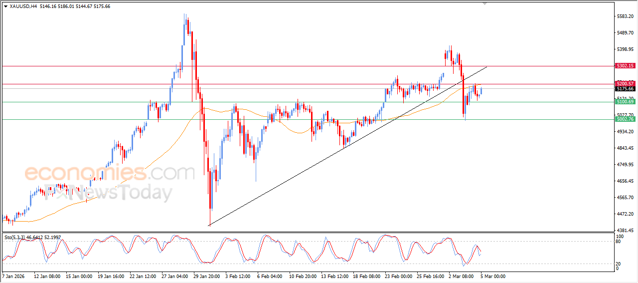 لذلك، نقترح انخفاضًا في سعر الذهب خلال التداول اليومي المقبل، إذا ظل مستوى المقاومة عند 5200 دولارًا سليمًا، لاستهداف مستوى الدعم عند 5000 دولارًا.